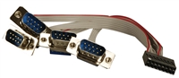 Four DE9M connectors to one 16-pin (2x8) connector (2.54 mm pitch)