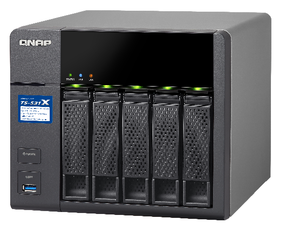 TS-531X 支持5 颗硬盘,内建 2 个 10GbE SFP+ 网络端口,有效支持 10GbE 网络环境,更配备硬件加速加密引擎,加密文件传输效能双倍提升,提供安全可靠、高性价比的四核心 NAS 解决方案。TS-531X 搭载 QTS 操作系统,提供全方位的储存解决方案,特别支持Container Station (软件容器工作站),帮助使用者快速地开发与部署物联网(IoT) 应用,创造崭新商业价值,并支持VJBOD (Virtual JBOD) 网络虚拟储存扩充柜,让使用者能以TS-531X的闲置储存空间扩充其他 QNAP NAS 的容量。TS-531X 全面满足中小企业数据备份、复原、私有云、虚拟化储存等需求,是建置 10GbE 网络环境应用的优秀储存方案。