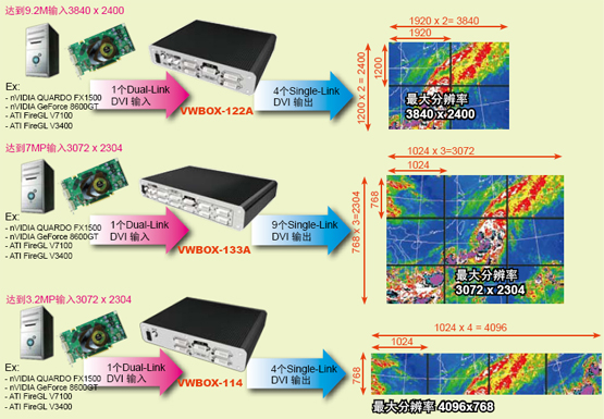 威强VWBOX系列产品包括高分辨率支持的VWBOX-114/122A/133A,以及支持缩放功能的VWBOX-E122。