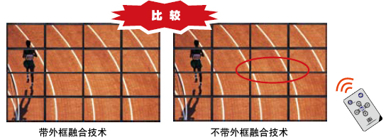 威强独特的GeniMaskTM边框融合功能,可消除由于多个屏幕拼接时边框带来的图象显示不连续。用户可通过威强提供的远程遥控器开启GeniMaskTM功能,自动设定补偿值,使图象显示更为清晰,连续。 |