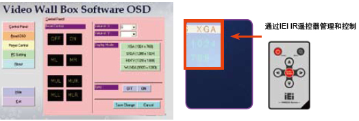 此外,威强提供用户友好的SmartOSD软件界面,可通过远程遥控器轻松设定电源开/关,输出分辨率选择,GeniMaskTM功能开启,显示模式选择等。 |