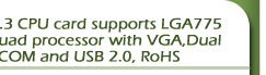 Full-size PICMG 1.3 CPU card supports LGA775 Intel® Core™2 Quad processor with VGA, Dual PCIe GbE, SATAII, COM and USB 2.0, RoHS |