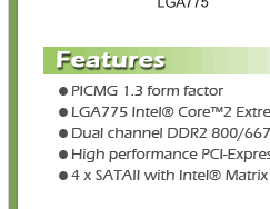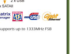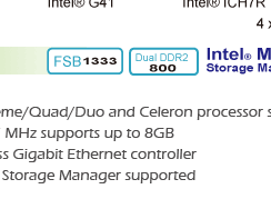 LGA 775 Intel® Core™2 Extreme/Quad/Duo, Celeron with a 1333/1066/800MHz FSB support |