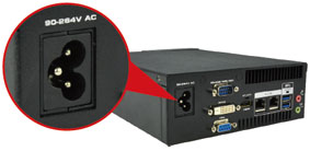 Embedded system, Core i3 Dual Core 2xxxT CPU (Above 2.5GHz), TDP 35W, 2GB DDR3 on-board memory, dual display multimedia BOX, Dual GbE LAN, build-in 802.11b/g/n wireless, 100~240VAC Input, built-in 90W adapter, black, R10 |