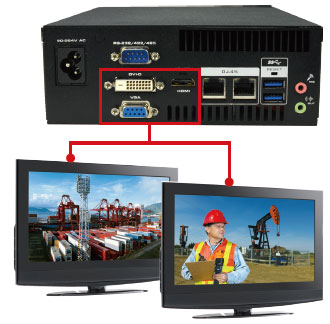 Embedded system, Core i3 Dual Core 2xxxT CPU (Above 2.5GHz), TDP 35W, 2GB DDR3 on-board memory, dual display multimedia BOX, Dual GbE LAN, 100~240VAC Input, built-in 90W adapter, black, R10 |