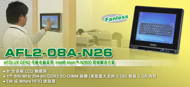 AFL2-xxA-N26 全新系列集成 Intel 800 MHz DDR3 高速处理器. 采用无风扇系统来减少噪音, 不会因为风扇上灰尘的积聚而降低 CPU 的利用率.