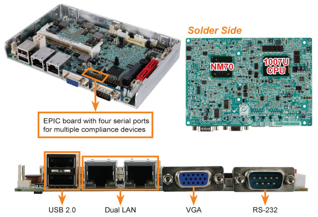 首款低功耗 Intel® Celeron® 双核平台采用板载处理器 (TDP=35W) 和无风扇设计. |