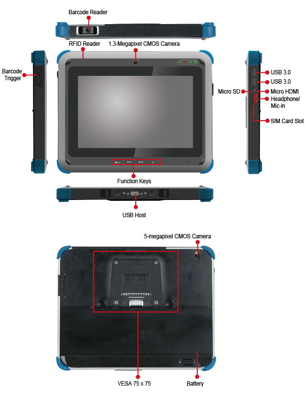 | 料号 | 描述 | | ICEROCK3-T10-HU-R10 | Intel® Celeron® 1047UE 1.4Ghz, Capacitive touch, IPS panel, 8GB RAM, 32G SSD, 802.11 b/g/n&BT, RFID, 1.3M/5M camera, GPS, Barcode Reader, RFID, 2nd battery, WS7P, RoHS | | ICEROCK3-T10-ETC-R10 | Intel® Celeron 11047UE 1.4Ghz, Capacitive touch, IPS panel, 4GB RAM, 32G SSD, 802.11 b/g/n&BT, RFID, 1.3M camera, WS7P, RoHS | | ICEROCK3-T10-HUI-R10 | Intel® i7-3517UE CPU, Capacitive touch, IPS panel, 8GB RAM, 32G SSD, 802.11 b/g/n&BT, 3.75G, RFID, 1.3M/5M camera, 2nd battery, GPS, barcode, WS7P, RoHS |